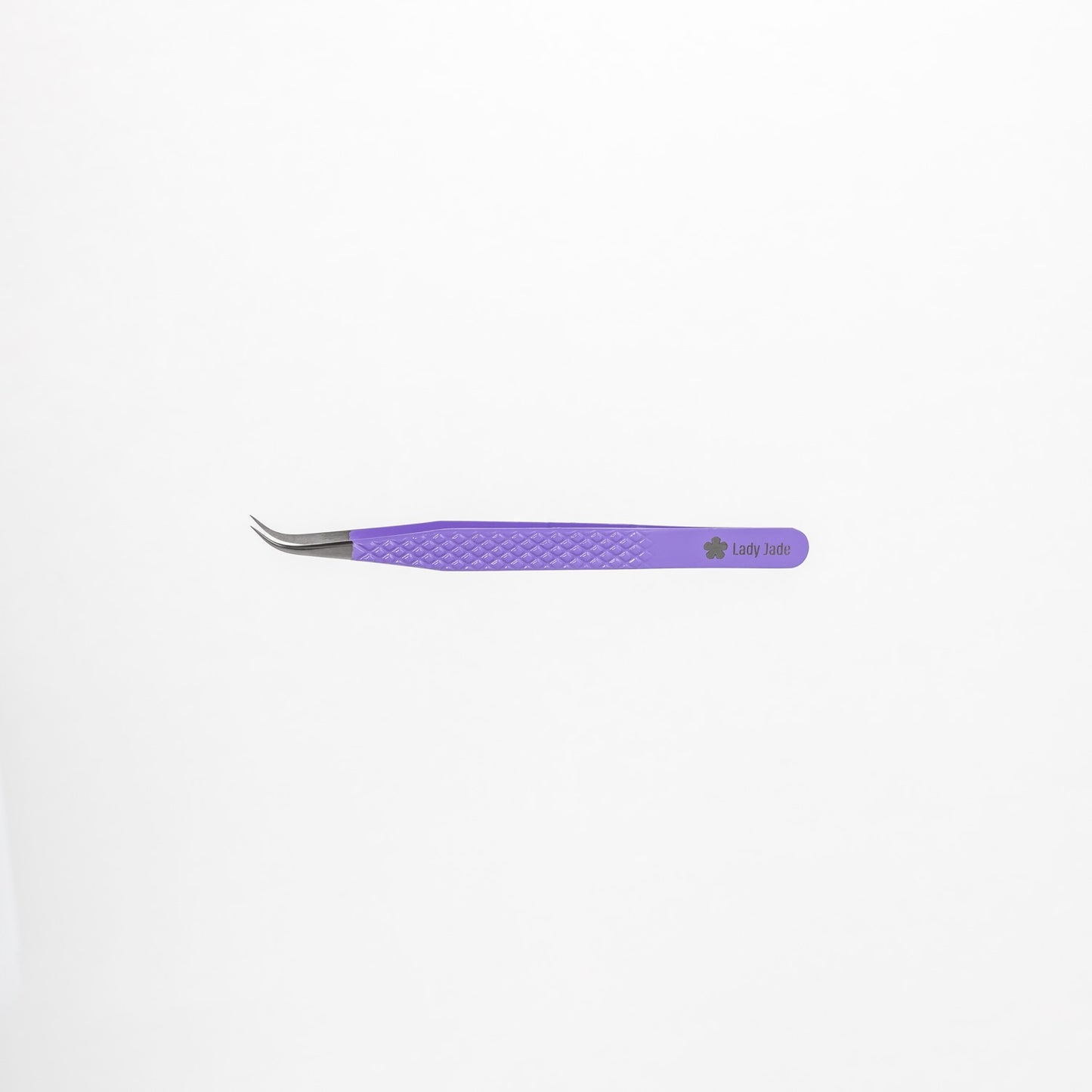 LADY JADE is I must have in your tweezer collection, enjoy slightly less of a curve than the fairy princess tweezer for artist looking to have complete control over every fibre you fan. The tweezers perfect for any density of fan ranging from a two dimensional Russian volume to a 25 dimensional mega volume. The precision no slip grip will ensure you never lose any fibres. This is an advanced artist must have, The curvature is perfect for working on any eye shape and any density of lash! If you love our fairy princess tweezer you will love this new tweezer with a slightly less curvature for more precision application! Crafted from 100% Japanese steel, gummy coated for all day comfort! * please note the gummy coating should not be soaked in acetone or preempt CS 20! Simply soak the tip of the tweezer in the disinfectant of your choice and spray the shaft of the tweezer with 70% alcohol for perfect disinfection!